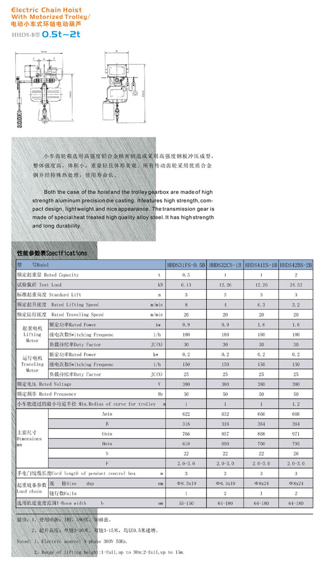 電動小車式環鏈電動葫蘆HHDS-B型(0.5t-1t)